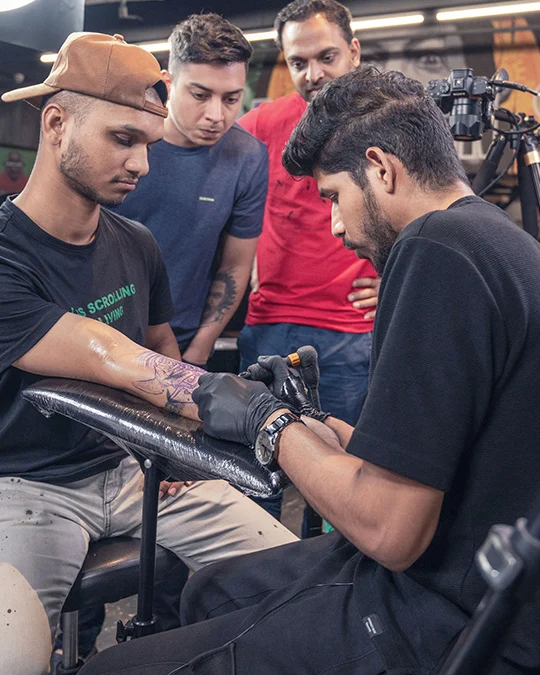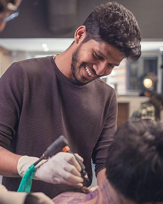 Allan’s real shift didn’t begin in a studio. It began on a casual trip to Goa with friends. One evening, they passed by a tattoo studio. Allan walked in, not to get inked, but out of curiosity. He stood quietly, watching an artist at work. The sound of the machine, the focus, the intimacy of ink on skin, it struck him like lightning.