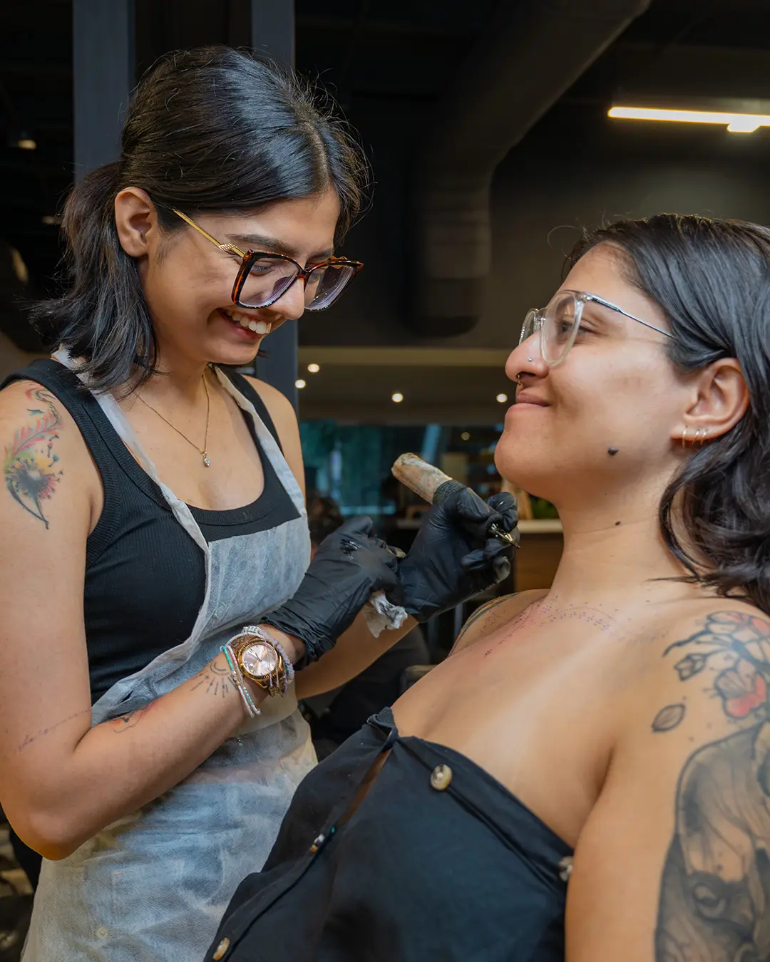 However, pursuing a career in tattooing wasn’t an easy decision for Sakshi. The idea of being a tattoo artist also met with hesitation from her family. "Tattooing wasn’t even considered an option, it was unheard of. But I couldn’t imagine doing anything else," she says. She knew she had to break through these barriers, and that’s where Aliens School of Tattoo Art came in.